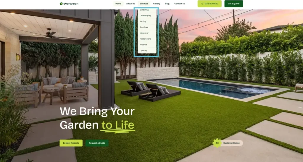 Google favors depth and detail. Instead of lumping all your services together on one page, create separate, keyword-optimized pages for each offering for example, “Garden Design,” “Irrigation Installation,” and “Lawn Aeration.”