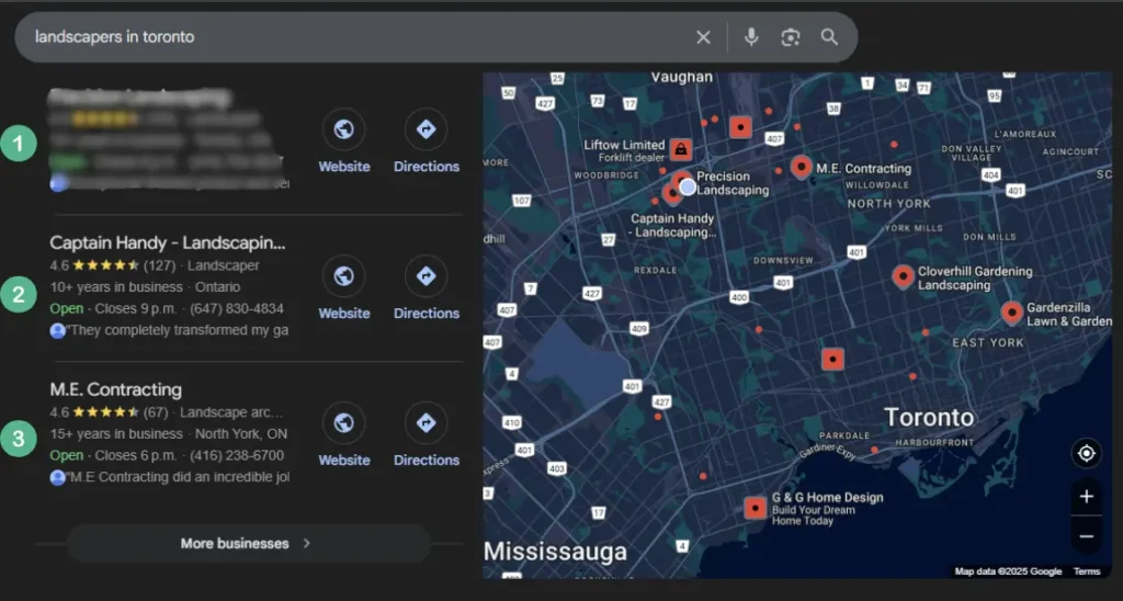 Studies show businesses in the map pack receive up to 44% of all local clicks, making it one of the most valuable spots to appear for landscapers.